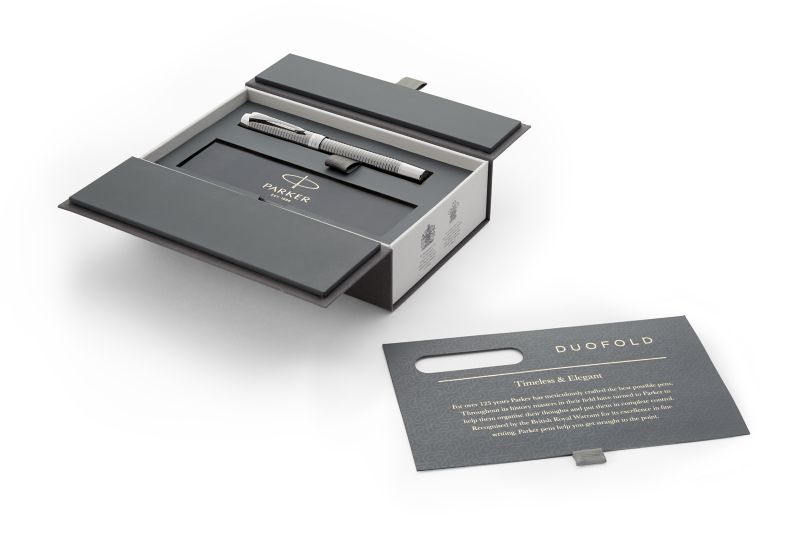Ручка роллер Parker Duofold Prestige Ruthenium Chiselled CT от официального дилера Parker в Майкопе. Вы можете дополнительно заказать гравировку, которая подчеркнет Вашу оригинальность и придаст памятность статусному подарку. Все ручки Паркер поставляются в фирменном футляре.
