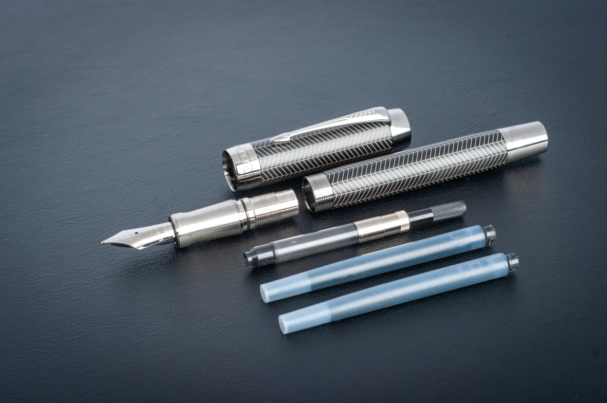 Перьевая ручка Parker Duofold Prestige Centennial Black Chevron CT от официального дилера Parker в Майкопе. Вы можете дополнительно заказать гравировку, которая подчеркнет Вашу оригинальность и придаст памятность статусному подарку. Все ручки Паркер поставляются в фирменном футляре.